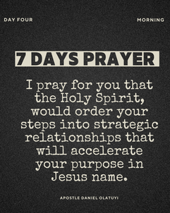 Visit our social media platforms @thedwellingofthelordchurchint or Apostledanielolatuyi on all media platforms to join our prayers every 1st of the month through the 7th of the month.